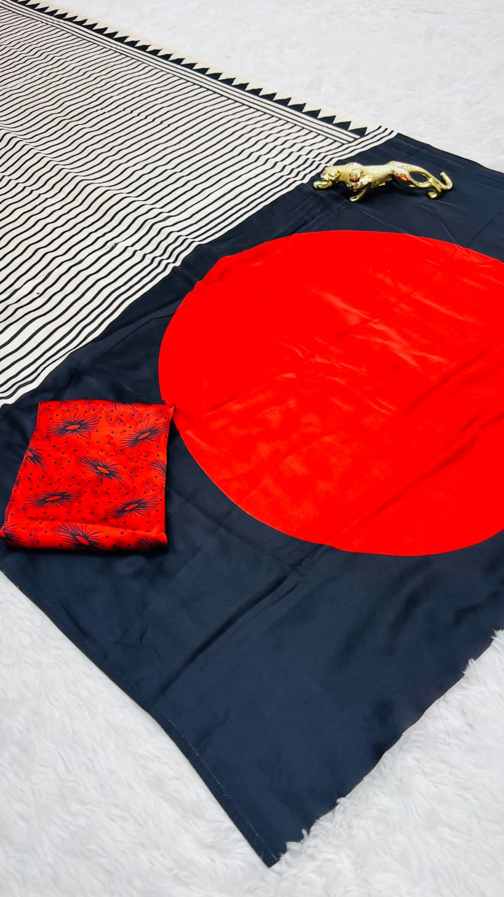 Ajrakh Print Border With Ajrakh Rich Pallu With Contrast Blouse