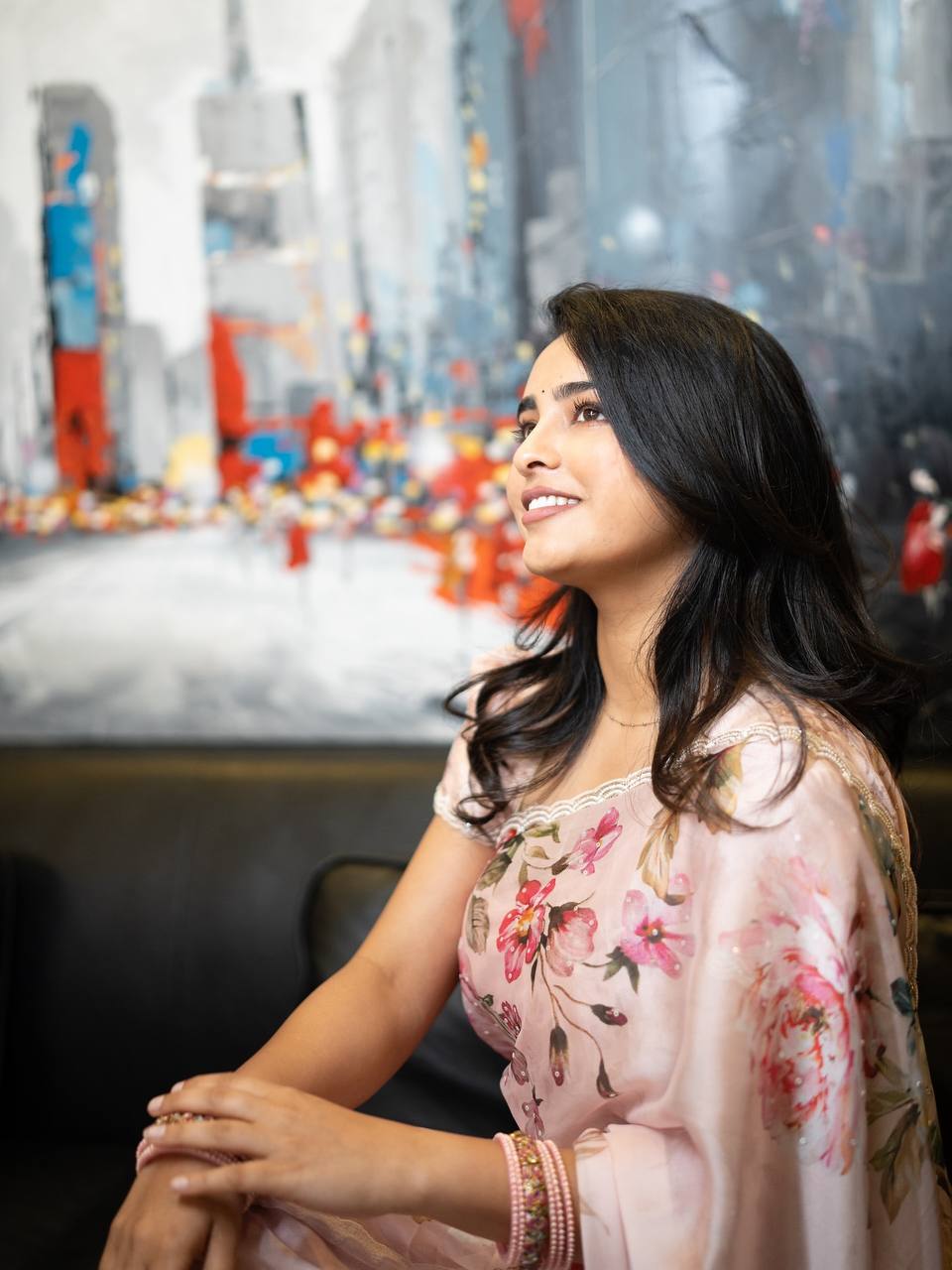 Work : Beautiful Floral Print With Beads And Katdana Handwork