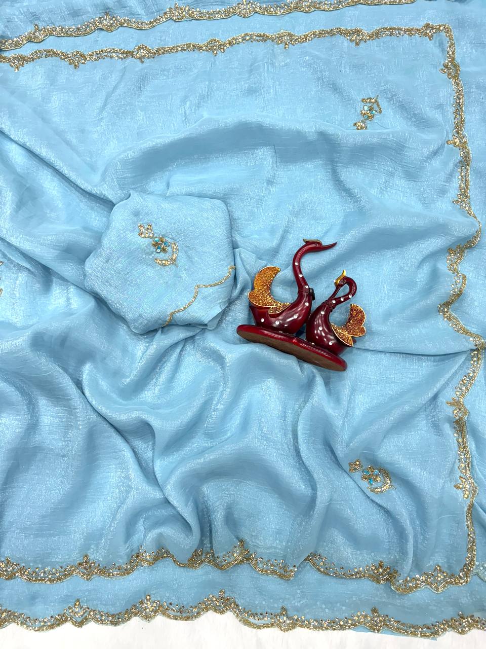 Sky Diamond Hand Work Beautiful And Captivating Designer Saree